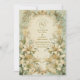 An elegant vintage-inspired wedding design featuring ivory lilies arranged in a romantic floral frame with ornate golden scroll accents. The soft cream and gold palette adds timeless sophistication, perfect for classic, formal, or garden-inspired celebrations