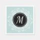 Beautiful paper napkin with mint blue floral wreath and personalised monogram.