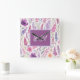 Romantic lila pink Pastel Botanical Spring Meadow Square Wall Clock