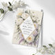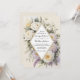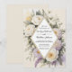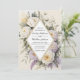 Embrace the romance of a blooming secret garden with this Romantic Lilac Floral Geometric Wedding Invitation. This design is a masterpiece of soft colors, featuring an abundant arrangement of creamy white roses, delicate lilac dahlias, and soft sage foliage.