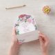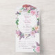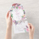 ALSO AVAILABLE WITH A QR CODE TO SCAN IN THE RSVP AREA. This design features a floral oval frame of purple and pink lilacs, roses, and other flowers complimented with eucalyptus and greenery. A sweet bird tops the wreath of flowers. Personalised All-In-One invitations are a unique combination of both a beautifully printed custom invitation with an easy to tear off perforated RSVP postcard. And they are so easy to use! You simply fold, then seal the back flap with the three included clear stickers, and mail. And when your guests receive your custom invite, they just tear the perforated RSVP Card off and drop it back in the mail to you!