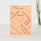 The front of this romantic valentines love greeting card is covered in various words of love "I Love you "In Love" "Loving you" and other short messages for letting someone special just how much you love them. The messages are printed in various red tones on a neutral soft peach background. The card isn't gender specific so it can be sent to a boyfriend or girlfriend or husband, wife, lover, in fact it's suitable for anyone you're in love with. There's a short non-rhyme message inside the card that can be easily personalised for your own loving message.