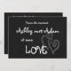 Romantic Love Wedding Invitation | Chalkboard. Elke Clarke© Cute, fun Wedding Invitation with black chalkboard background printed photo effect, the word Love in a white whimsical font and two hearts intertwined with fun handwriting font typography. A modern wedding invitation design which is fully customisable. Other colours available