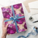 Romantic Magenta Roses and Gold Leaves on Peach Wrapping Paper