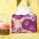 This design features a romantic magenta, burgundy, purple, lilac, and pink bouquet of mostly roses, with decorative gold leaves. This lovely wallpaper-like pattern is set against a soft peach background for a vibrant and feminine look.
