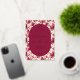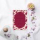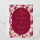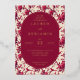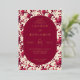 This elegant wedding invitation features a vintage-inspired design with a lush floral pattern of pink roses and green leaves on a cream background. The central maroon oval, framed in gold, highlights the event details in sophisticated serif fonts, creating a harmonious blend of tradition and modern clarity. Rich colors like deep maroon and vibrant pink set a warm, inviting tone, perfect for celebrating love and commitment. Ideal for couples seeking a romantic yet refined aesthetic, this invitation sets the stage for an unforgettable occasion.