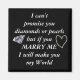 Romantic proposal magnet "I can't promise you diamonds or pearls but if you marry me I will make you my World." Decorated with image of diamond and pearl necklace in shape of a heart. Novel idea for a casual surprise proposal. Stick it on the fridge as the first thing your partner sees when they grab the milk in the morning.