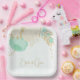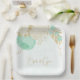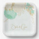 Romantic mint green & white flowers with gold leaves botanical wedding paper plate.