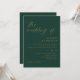 Meticulously crafted, the modern romantic calligraphy gracefully sweeps across the invitation, conjuring an enduring sense of elegance. The fusion of emerald green and understated gold accents imparts a subtle opulence, painting a visual masterpiece that artfully symbolises the profound love shared between two hearts.