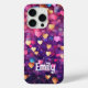 Romantic Modern Love Hearts Personalised Name iPhone 15 Pro Phone Cases features a cute pattern of pink, purple, gold and blue love hearts. Perfect gift for girls, girlfiends, wife for Valantine's Day,  birthday, Christmas, holidays and more. Designed by Evco Studio www.zazzle.com/store/evcostudio