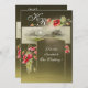 Elegant floral design with red poppy flowers and a beautiful romantic countryside landscape,moon,trees,rustic cottage,green fields ,bright 3D gem stone.Digital graphic elaboration in vintage style by Bulgan Lumini .Easy to customise with your own text as a announcement,place cards ,save-the-date cards,thank you cards ,bridal showers, sweet 16 birthdays,holiday parties, engagement showers, or just about any event you wish!