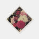 Romantic vintage look moody floral wedding napkin features a beautiful flower and greenery pattern on a dramatic black background.