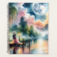 This enchanting romantic moonlight scene captures a tender moment between a couple beneath an umbrella, set against a dreamy watercolor night landscape. The artwork glows with a soft pastel sky, where swirling clouds reflect in the glassy surface of a moonlit lake. Lantern-lit paths and blossoming flowers create a fantasy garden ambiance, while weeping willows and twilight hues evoke the magic of a whimsical forest romance. Gentle ripples and mirrored reflections enhance the tranquil mood, making this piece an ideal backdrop for serene contemplation or heartfelt gifting. Perfect for those who cherish scenic twilight reflections and serene nature art, this piece tells a quiet story of love and wonder under a glowing, celestial moon. AI generated artwork.