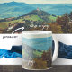 Mug featuring a vintage style photo. Romantic summer landscape: old church on the hill, small village in the mountain valley, forest in the foreground, mountains in the background. Great gift for travel lovers and outdoor enthusiasts. Stylish addition to travel-themed kitchen interior.