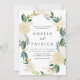 Share your wedding details in style with this QR code wedding invitation featuring a floral wreath in soft ivory and cream tones, paired with greenery and faux gold foil accents. The wreath frames your text beautifully, while a scannable QR code makes it easy for guests to access your wedding website or RSVP online. The soft colour palette and elegant layout work well for rustic, garden, or formal wedding themes. Simply add your event information and upload your QR code to complete the look. This floral wedding invitation pairs beautifully with neutral colour palettes and works well for weddings in any season.