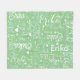 Your name takes centre stage, printed in various white and bluish font styles that create a harmonious blend across the blanket's expanse. Scattered among the names are small, delicate hearts, creating a whimsical dance across the greenish canvas.
