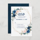 Romantic Navy blue Blush Pink Floral Geometric RSVP Card