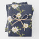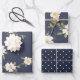 Romantic Navy Blue White Floral Bridal Shower Wrapping Paper Sheet