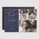 Romantic Navy Calligraphy 3 Photo Save the Date Magnetic Invitation