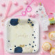 Romantic navy & white flowers with gold leaves botanical wedding paper plate.