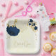Romantic navy blue & white flowers with gold leaves botanical wedding paper plate.
