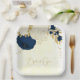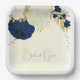 Romantic navy & white flowers gold paper plate