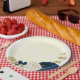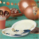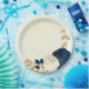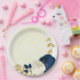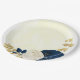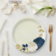 Romantic navy blue & white flowers with gold leaves botanical wedding paper plate.