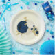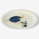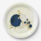 Romantic navy blue & white flowers with gold leaves botanical wedding paper plate.