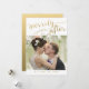 Perfect choice for your First Christmas Holiday Photo Card as Mr. and Mrs.. Send this romantic gold script hand lettered design to your family and friends as newlyweds. "Merrily Ever After". Design© Elke Clarke. Gold gradient background on back of card with second photo and holiday greeting text.