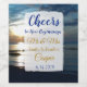Romantic Ocean Sunset Personalised Wedding sparkling wine or Wine Bottle labels. The text says, "Cheers" along with the bride and grooms Mr and Mrs names and wedding date.