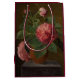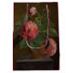 Still life of beautiful old English roses, deep bordeaux red. Oil on canvas by Jan Frans van Dael.