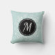 Romantic Pale Blue Floral Black Custom Monogram Cushion
