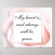 "My heart is, and always will be, yours." ~ Edward Ferrars to Elinor. This poster features a romantic quote by Jane Austen from her novel Sense and Sensibility in an elegant black font script, and a pretty pale pink floral rose background. Perfect for the one you love!