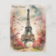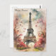 Romantic Paris Eiffel Tower Watercolor Floral Postcard