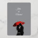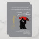 Celebrate your love with this stunning, artistic wedding invitation, featuring a romantic silhouette of a couple sharing an intimate moment under a red umbrella. The elegant black and white contrast, paired with a bold splash of red, creates a timeless and dramatic feel. Perfect for modern, Parisian, European, and vintage-inspired weddings. Personalise with your details and set the tone for an unforgettable day!
