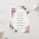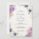 Invite your guests to celebrate your special day with this elegant watercolor floral wedding invitation. Featuring a beautiful blend of soft pastel colours, including purples, blues, and golds, this invitation exudes a romantic and sophisticated charm. The delicate floral illustrations and modern script font create a timeless design, perfect for a classic yet contemporary wedding. Customise with your wedding details and make your day unforgettable with this exquisite invitation.