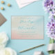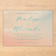 This wedding invitation features a soft, watercolor background with a gradient transitioning from peach to light blue, creating an inviting and romantic atmosphere. The elegant script typography adds sophistication, while the balanced layout ensures readability and focus on the event details. Perfect for a formal celebration, this design combines pastel tones and artistic flair, conveying warmth and anticipation for the special occasion.