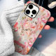 This elegant phone case features a delicate arrangement of peach and pink roses intertwined with soft greenery on a muted grey background. A customisable coral nameplate adds a personal touch, making this design perfect for anyone who loves timeless floral patterns and a romantic aesthetic.