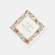 These wedding napkins feature a romantic floral design with large, soft peach and pink blooms surrounded by muted green leaves, creating an elegant vintage aesthetic. The central white rectangle offers customisable space for names and dates in classic serif typography, enhancing the formal yet intimate feel. Perfect for adding a touch of natural beauty to your special day, these napkins convey warmth and celebration, making them ideal for weddings or other significant occasions.