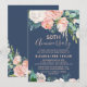 This romantic peonies blue 50th wedding anniversary invitation card is perfect for an elegant anniversary party. The floral design features blush pink, peach and white cascading watercolor flowers on a navy blue background.