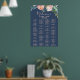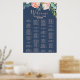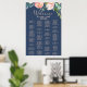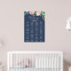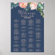 This romantic peonies blue alphabetical seating chart poster is perfect for an elegant wedding. This sign can be used to organise your guests alphabetically or by table number. The floral design features blush pink, peach and white cascading watercolor flowers on a navy blue background. This wedding poster includes enough room for up to about 120 guests. Make room for more (or less) guests by clicking the "customise" button and decrease or increase the size of the font. In addition to the placement of each guest, personalise this sign with the names of the bride and groom and the wedding date.