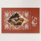 The charming puzzle design showcases a beautiful watercolor illustration of a white floral frame on a warm, earthy red background. Personalise it to your liking by tweaking the text, uploading a photo, and choosing from anniversary numbers like 10, 20, 30, 40, 50, 60, 70, 80, or 90. It's a special gift to mark a couple's milestone and provides a fun and interactive activity that can be enjoyed over and over again!