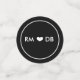 Romantic table confetti for wedding or engagement parties personalised with photos of the happy couple, and your initials with a heart in black and white.