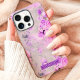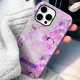 This elegant phone case features a dreamy pink and lavender floral design on a soft grey background. Personalised with a name in a stylish purple label, it exudes sophistication and charm. Perfect for anyone who loves romantic floral aesthetics and customisable accessories.