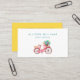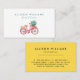 Elegant, stylish and sophisticated business card featuring a Romantic pink bicycle with a basket with a bouquet of flowers in watercolor colourful palette. Card reverse in bright yellow.