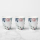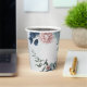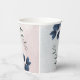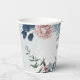 Beautiful botanical paper cup featuring pink, dusty blue and navy blue flowers with green leaves.