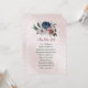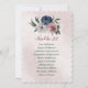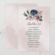 Beautiful botanical seating chart card featuring romantic pink, white and navy blue flowers with green leaves.