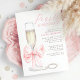 Romantic Pink Bow Pearls & Prosecco Bridal Shower Invitation