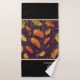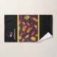 Romantic Pink Flamingos with autumn leaves black Bath Towel Set