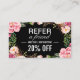 This Romantic Pink Floral Beauty Salon Referral Card is the perfect way to reward your loyal customers for referring new business to your salon. Featuring a beautiful floral pattern in shades of pink, this referral card is both stylish and practical. Simply hand out these cards to your customers, and when they refer a friend, they can present the card to receive a special discount or offer on their next visit. Ideal for beauty salons looking to attract new business and reward loyal customers.